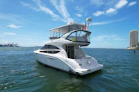 Step aboard the 45’ Meridian Yacht IRIS and enjoy its spacious decks and modern interiors. The yacht features two well-appointed cabins, a stylish salon area, ample outdoor seating, and spacious flybridge area to observe the best views of the Miami skyline. Accommodating up to 13 guests, it’s ideal for boat party or special occasions. Enjoy luxurious amenities, and service by our certified crew members which included in your charter. Rent the 45’ Meridian Yacht IRIS for memorable vacation in Miami.